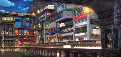 © Deztinie, Fototapeta premium Light City - Night , Anime background , Illustration