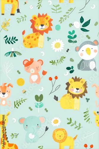 © Kan, Fototapeta premium Light-Colored Background with Cartoon Animal Patterns