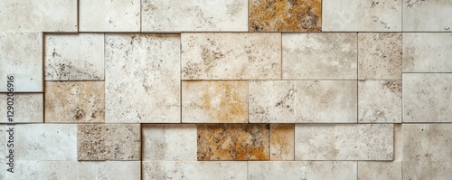 © Vladimir, Naklejka premium Light-colored tile arrangement on a floor showcasing a natural stone pattern with varying tones and textures