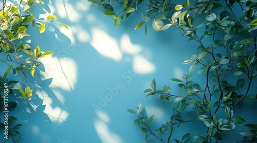 Obraz premium Light-dappled teal backdrop framed by greenery