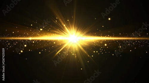© Johannes, Obraz premium Light effect. Vector shining golden bright light. Gold shine burst with sparkles illustration isolated on black background