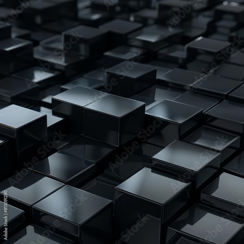 Fototapeta premium Light elegant dynamic abstract patterns create a mesmerizing visual on the black cubes of different sizes, Sharpen 3d rendering background