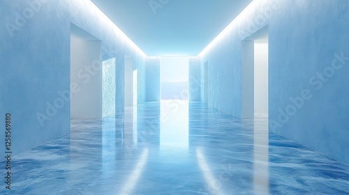 Fototapeta premium Light-filled blue hallway interior