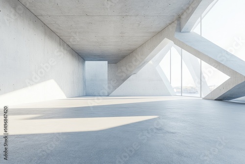 Obraz premium Light-filled, modern concrete interior space with angular, triangular features