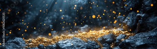 Obraz premium Light filtering through dust as ore is extracted from a rocky wall in a...