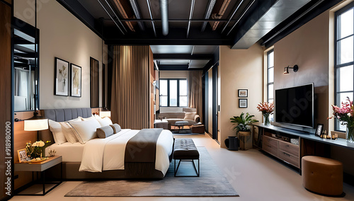 Fototapeta premium Light flesh Loft color main bedroom model, Loft Style