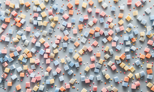 © naaz, Obraz premium Light gray background with tiny pastel squares scattered whimsically
