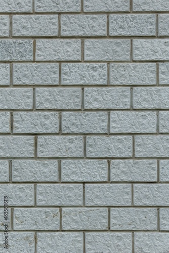 © Wirestock, Obraz premium Light gray brick wall with rough, uneven texture. Repeating rect
