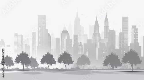 Naklejka premium Light gray cityscape background. City buildings with trees in park view....