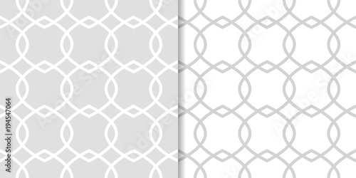 © Liudmyla, Naklejka premium Light gray geometric ornaments. Set of seamless patterns
