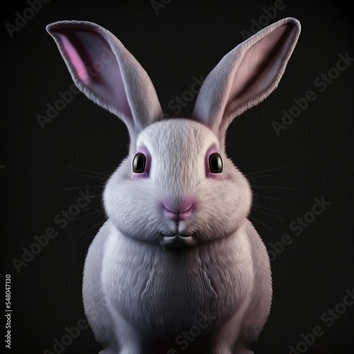 Obraz premium Light gray rabbit isolated on black background