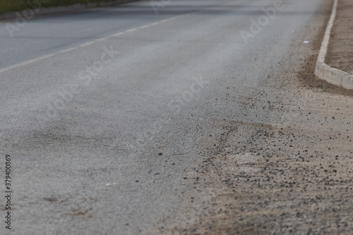 Naklejka premium Light grey asphalt on the new road