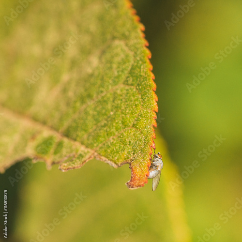 © Kerry Snelson, Obraz premium Light Grey Fly on Leaf Edge