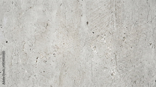 © Tanicsean, Obraz premium Light grey rough concrete wall with visible tool marks, pitting, fine cracks, embedded pebbles and raw textured surface.