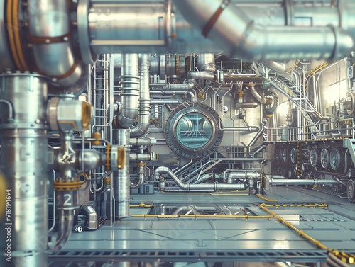 © Moviebirth, Fototapeta premium Light industrial equipment, 3D render, intricate