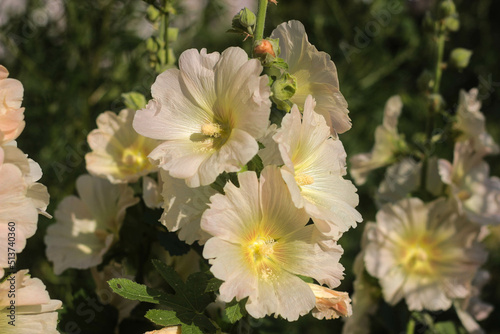 © Анна Рубашина, Fototapeta premium light lemon mallow in sunlight with pollen on leaves