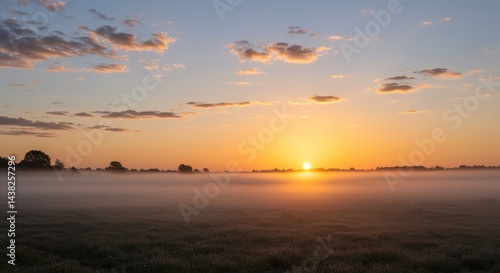 © MOHAMMAD HANIF, Fototapeta premium Light mist rising under scattered clouds at sunrise