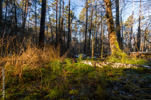 Obraz premium Light mood in the morning mist at sunrise in the forest