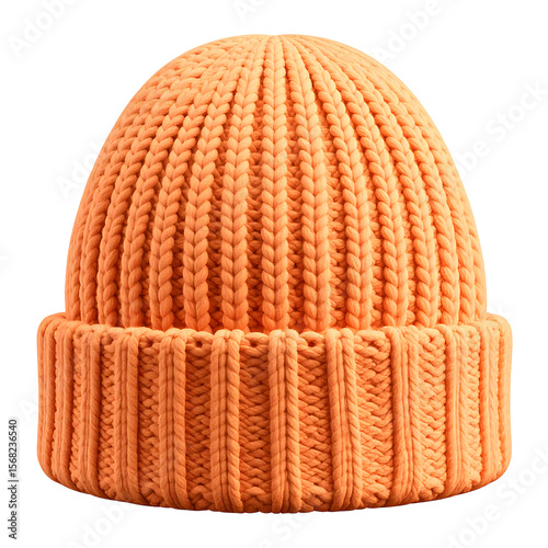 © Okla, Fototapeta premium Light Orange Ski Hat Icon with Rounded Puff and Clean Knit Pattern on Transparent Background