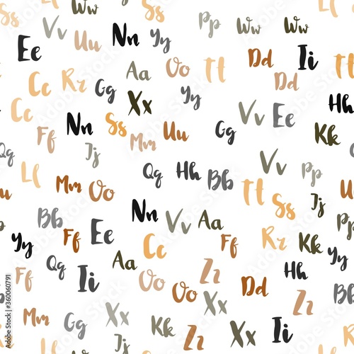 Naklejka premium Light Orange vector seamless background with signs of alphabet. Abstract...