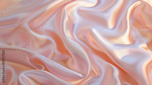 Fototapeta premium Light peach pink silk satin fabric with luxury drapery and gentle folds.