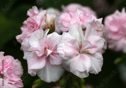 © macrossphoto, Fototapeta premium Light Pink Pelargonium flower with green leaves closeup in the garden