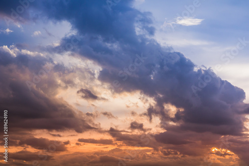 © kaewphoto, Obraz premium Light rain clouds and sunset