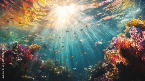 Fototapeta premium Light rays penetrating underwater creating a dreamy effect