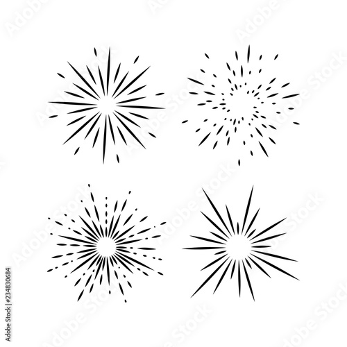 Obraz premium Light rays, sunburst and rays of sun. Design elements, linear drawing,...