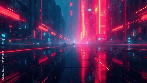 © Nima, Naklejka premium Light ripple distortions. Cyberpunk-inspired abstract background with vibrant neon grids and subtle digital interference patterns, High clarity, noise-free, 4K, UHD