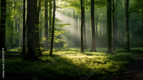 Fototapeta premium light shining into the green woods