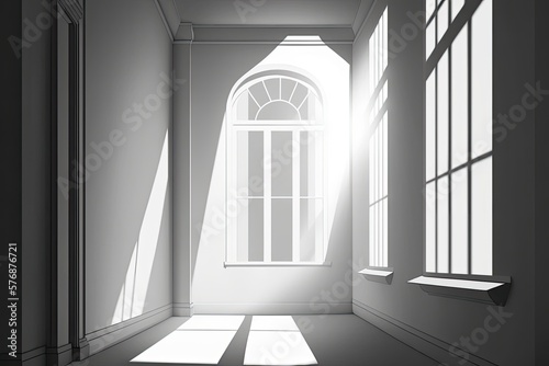 Fototapeta premium Light shining through the windows onto the white walls. Generative AI