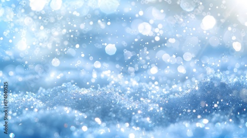Obraz premium Light snow bokeh background on shiny glitter light blue snow winter for...
