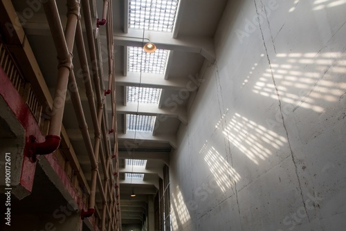 Obraz premium Light streaming through prison corridor ceiling