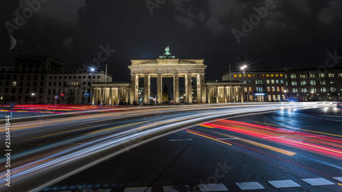 © ms_pics_and_more, Fototapeta premium Light stripes in front of the Brandenburg Gate in Berlin Germany