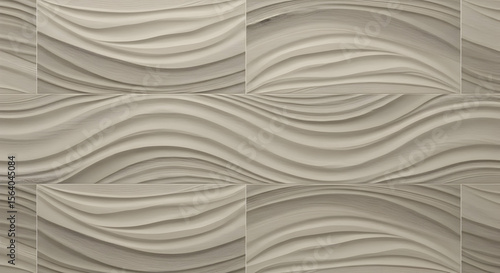 Obraz premium Light taupe 3D textured wall panel with elegant flowing wave pattern, ideal...