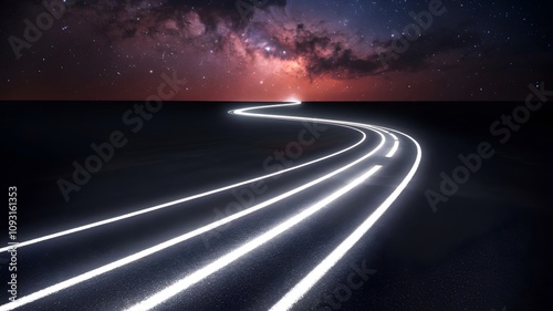 © happie, Fototapeta premium Light trail of endurance on a racetrack into the cosmos