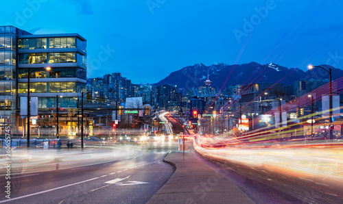 Obraz premium light trails go out of the downtown vancouver