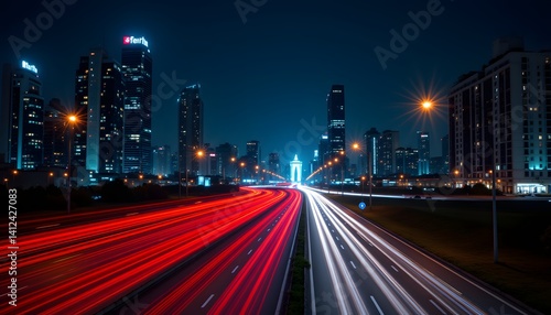Fototapeta premium light trails of traffic at night in urban city, long exposure style