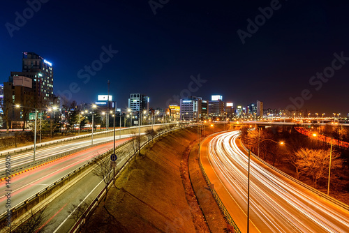 © Atakorn, Fototapeta premium Light trails on a highway at night