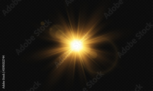Obraz premium Light Vector with Sun Glare. Sun, Sunrays, and Glare.Overlays, light, sunrays, overlays, light transitions, lens flare, light leaks and glare in PNG format. Gold Flare and Glare.