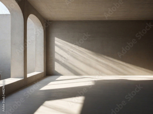 Fototapeta premium Light wall with sun shadows for product presentations generated by AI