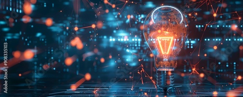 © sungedi, Obraz premium lightbulb with connection line and dot technology background concept