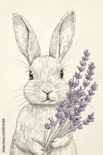 © Ahmad_Art, Obraz premium Lighthearted rabbit drawing, half-filled with soft lavender, simplistic art