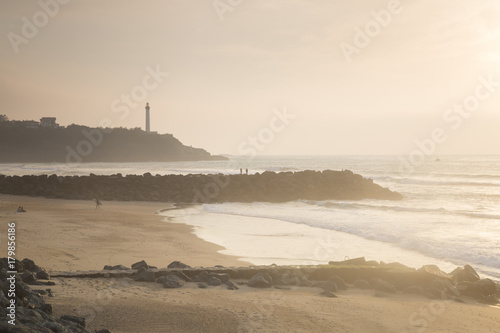 Fototapeta premium Lighthouse and Beach at Dusk, Biarritz