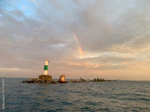 Fototapeta premium lighthouse and rainbow from Lake Michigan