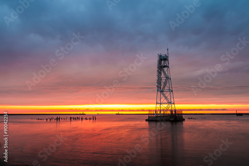© Konstantin Romanov, Obraz premium Lighthouse at dramatic Baltic sunset