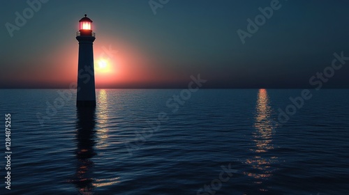 © AGUNG, Fototapeta premium Lighthouse at Sunset on Calm Ocean
