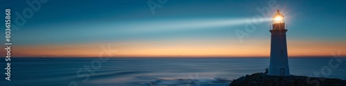 Fototapeta premium lighthouse banner, copy space, sea ​​or ocean view, sunset or twilight