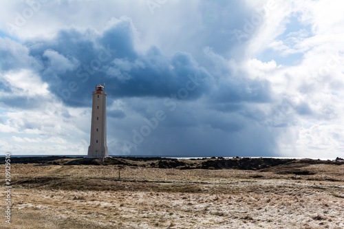Fototapeta premium Lighthouse in front of stormy clouds in Iceland